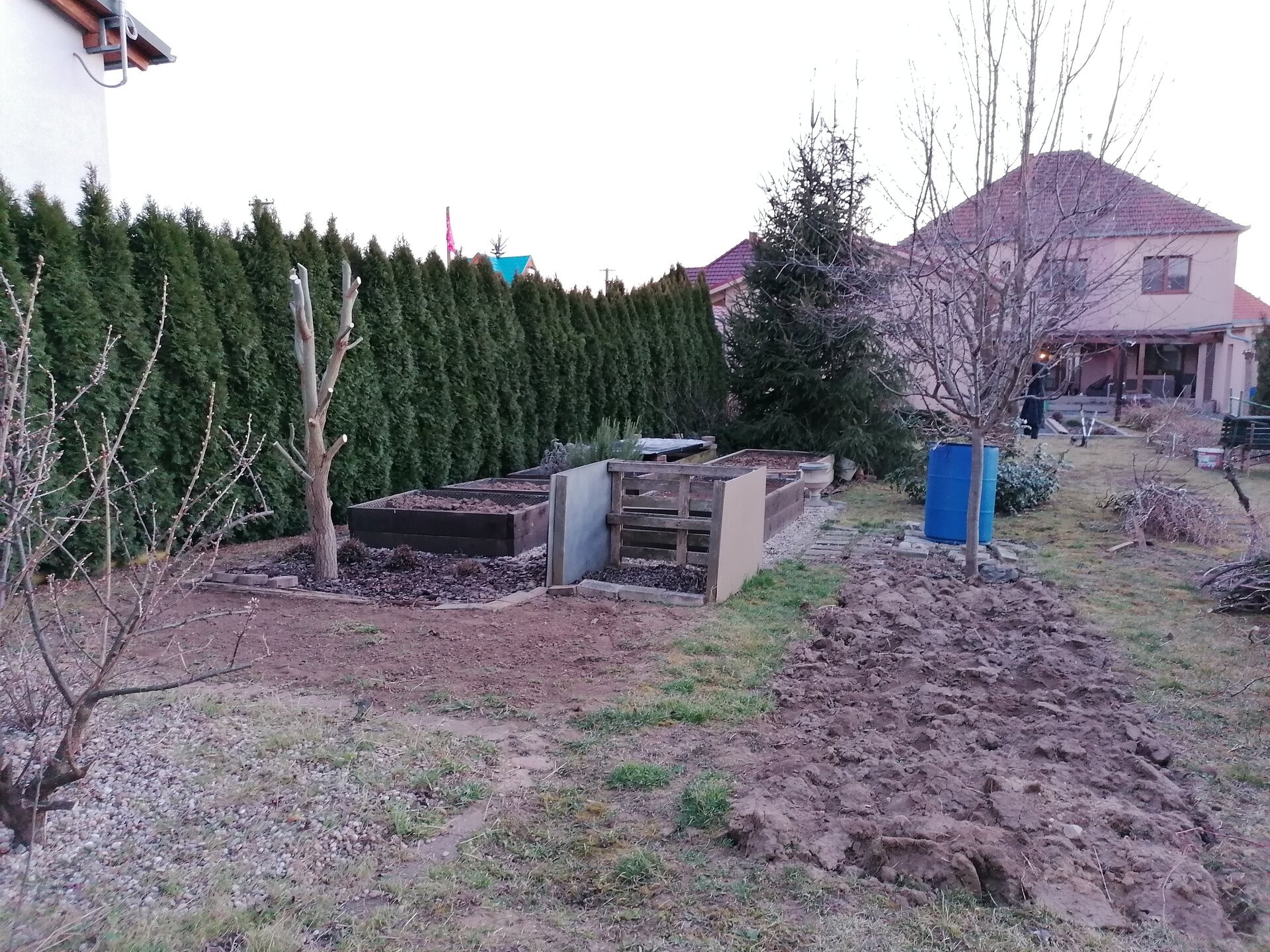 Súčasťou rodinného domu je záhrada na pozemku o rozlohe 608 m2 v ktorej sa nachádzajú ovocné stromy, okrasné stromy, krovy, vinič a vyvýšené záhony na pestovanie byliniek a zeleniny.